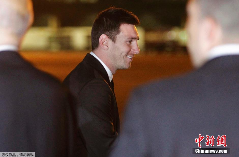 2014年6月9日,巴西科芬斯,2014巴西世界杯前瞻,阿根廷队乘专机抵达科芬斯,梅西西装革履受关注。