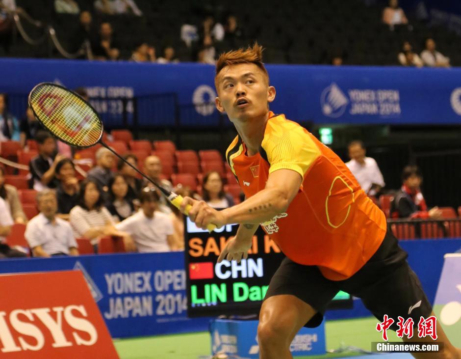 2014日本羽毛球公开赛6月10日在东京体育场开赛,久疏战阵的林丹在资格赛中亮相,以12-21、21-19、21-7,总比分2:1战胜日本选手坂井一将。林丹赛后称,因世界排名原因很多比赛打不了,此次参赛很开心,希望能表现得很好。中新社发 高越 摄