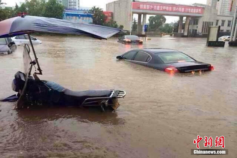 6月11日6时至9时,湛江市暴雨如注,3小时内部分地区降雨量已超100毫米,而且降水仍将持续。图为霞山区荣基国际广场附近的车辆被淹。中新社发 钟欣 摄