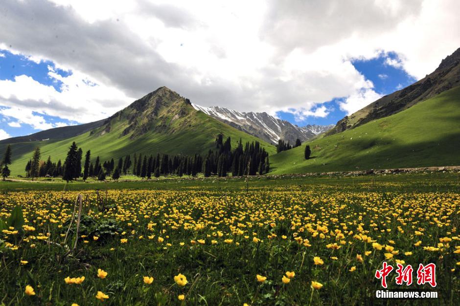 新疆伊犁唐布拉大草原现冬夏交融美景