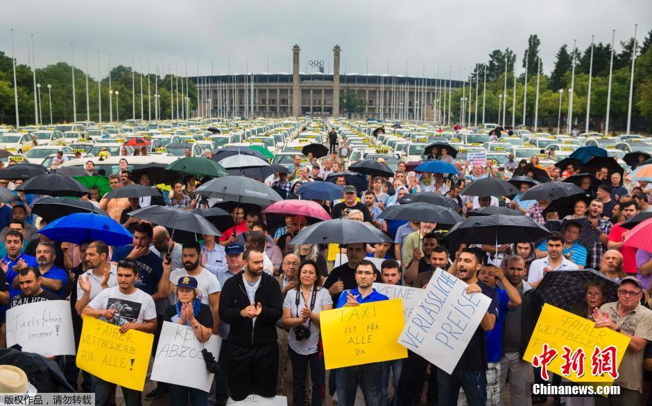 当地时间2014年6月11日,英国伦敦,出租车司机进行了为期24小时的示威,抗议无运营牌照的“黑车”,特别是美国打车应用Uber,该应用方便人们相互联系以共用同一辆车或者支付少量费用给私家车进行市内的短途出行。