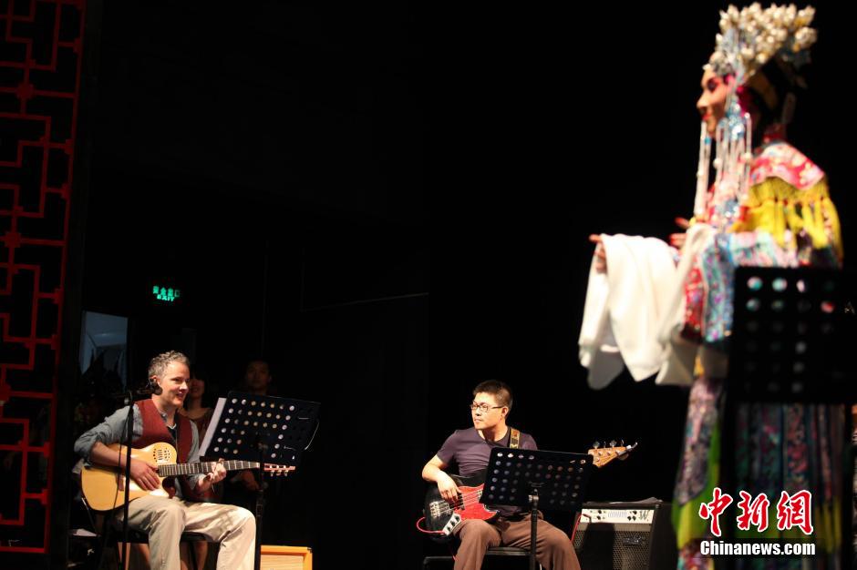 6月11日下午,北爱尔兰音乐人Sid?peacock携手重庆市川剧院的演奏家,一同开启川剧和爵士乐水乳交融的灵感之作。Sid?peacock是经英国驻重庆总领事馆和英国PRSF音乐基金会遴选,于一个月前抵达重庆市川剧院访问交流。他们当日共同演奏爱尔兰民谣《Red is the rose》、川剧曲牌《秋色芙蓉》等曲目。李裕锟 摄