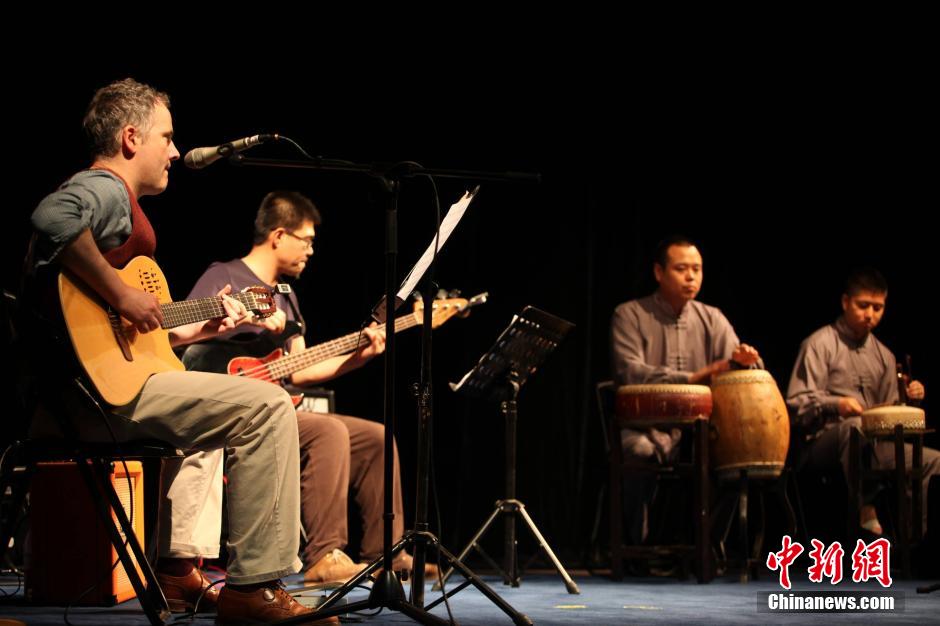 6月11日下午,北爱尔兰音乐人Sid?peacock携手重庆市川剧院的演奏家,一同开启川剧和爵士乐水乳交融的灵感之作。Sid?peacock是经英国驻重庆总领事馆和英国PRSF音乐基金会遴选,于一个月前抵达重庆市川剧院访问交流。他们当日共同演奏爱尔兰民谣《Red is the rose》、川剧曲牌《秋色芙蓉》等曲目。李裕锟 摄