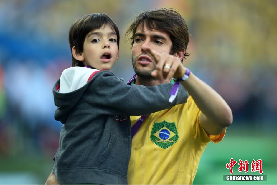 北京时间6月13日凌晨4点,2014年巴西世界杯揭幕战在圣保罗竞技场展开,东道主巴西迎战克罗地亚队。卡卡携爱子助阵巴西。
