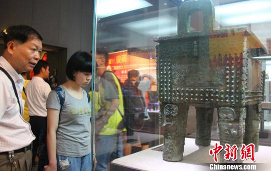 图为商晚期的司母辛方鼎吸引不少游客 张远 摄