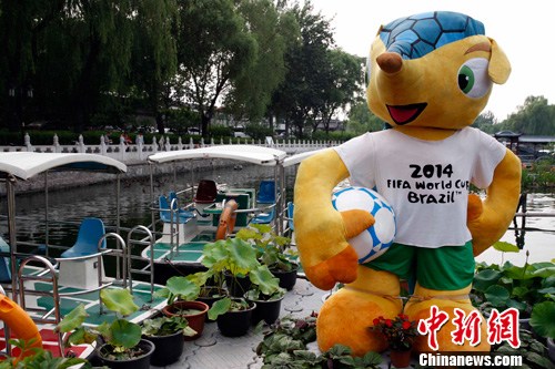 2014巴西世界杯已经拉开帷幕,并进入紧锣密鼓的比赛。这一全球的足球盛会同样吸引了国人的关注。因此,观赏巴西世界杯吉祥物“福来哥”、购买世界杯邮品、邀上亲朋好友齐聚酒吧观赏球赛等都成为民众生活的一部分内容。在北京著名旅游之地什刹海的野鸭岛,市民可以零距离接触巴西世界杯吉祥物“福来哥”,并在岛上设立了临时邮政局,现场加盖邮政戳,留作永久纪念。2014巴西世界杯吉祥物“福来哥”,其原型为巴西犰狳,是巴西特有的物种。犰狳在感受到外部威胁时,它就会缩成一团,用甲壳保护自己,此时形态同足球相似。 中新社发 任海霞 摄