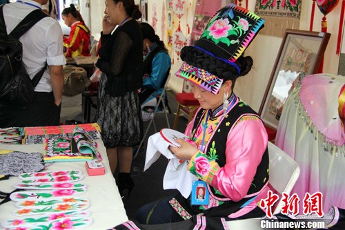 6月14日,海南省举办第五届黎族织锦大赛和黎族传统纺染织绣技艺保护成果展。当日,是中国第九个文化遗产日。在黎族织锦大赛现场,来自海南少数民族地区的50多名选手用娴熟的动作展示她们精巧高超的纺织技艺。中新社发 张茜翼 摄