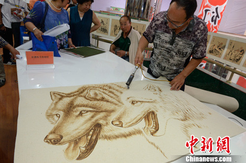6月14日,技师现场展示羊毛毡烫画。据了解,羊毛毡烫画用电烙在毡子上作画而成。当日,内蒙古呼和浩特非物质文化遗产传习展示馆开馆,该馆对市民免费开放,多种形式展示内蒙古地区非物质文化遗产项目。刘文华 摄