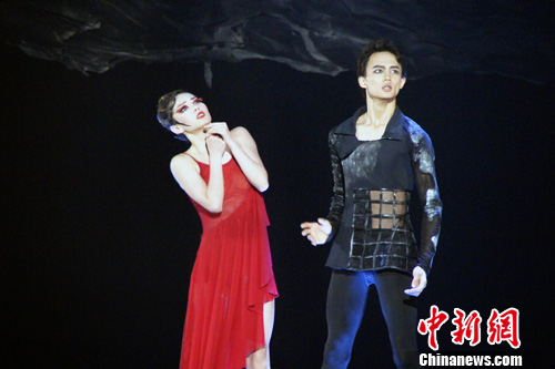 6月13日晚,由冯小刚任总监制、谭盾任音乐总监、王媛媛编导的北京当代芭蕾舞团舞剧《夜宴》首登天津,在天津大剧院歌剧厅上演了一场中国版的《哈姆雷特》。 中新社发 张道正 摄