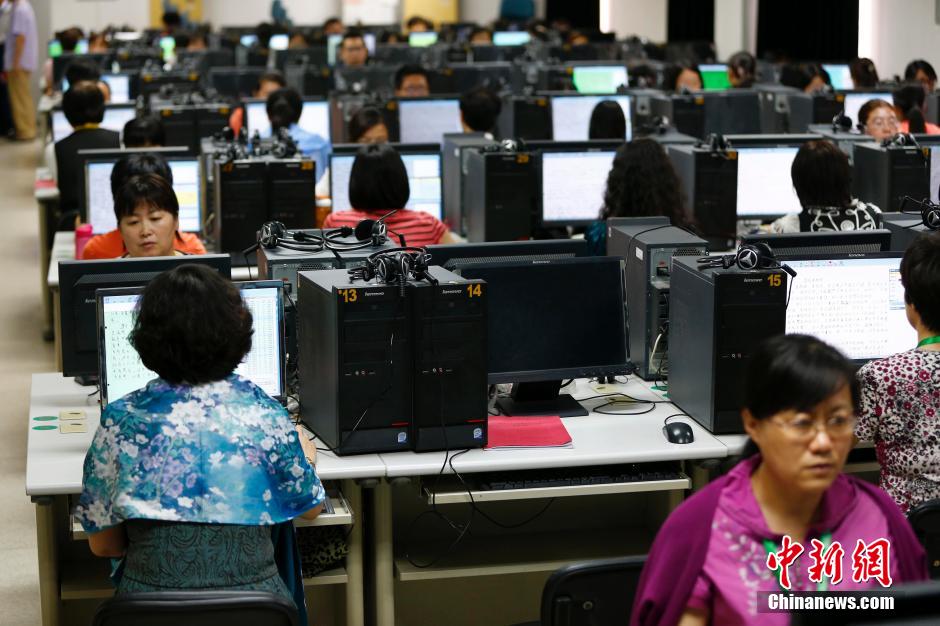 6月15日,北京市2014年高考评卷媒体开放日,北京大学的评卷现场实行封闭管理,增设安检门与手持扫描仪等设备并派武警保卫。北京市教育考试院新闻发言人臧铁军介绍,今年北京市近7万考生在7个考区、101个考点、2173个考场参加考试,共需要阅卷近24.6万份。根据工作安排,评卷工作从本月9日开始,预计22日结束,23日12时发布高考成绩并通知考生,高招各批次录取最低控制分数线也将同日向社会发布。中新社发 富田 摄