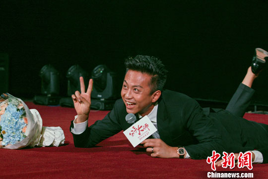 6月17日,邓超带着自己执导的“超氏喜剧”电影《分手大师》亮相上海滩,与上千名观众以及羽泉、周笔畅一起提前观影,并现场论“贱”,邓超不负众望,获此殊荣笑翻全场。图为演员邓超。中新社发 张亨伟 摄