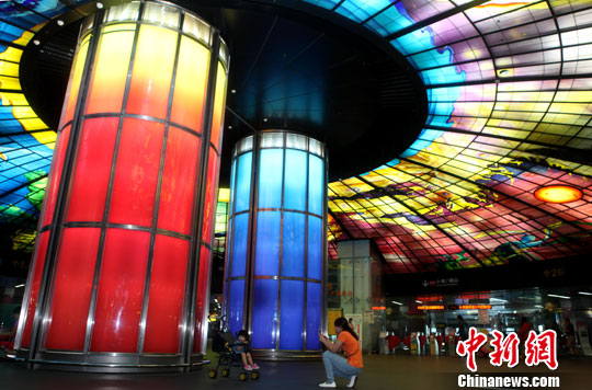 据了解,车站大厅的“光之穹顶”直径30公尺,由美籍意大利艺术家Narcissus Quagliata创作,藉由玻璃、彩绘及灯光等形式,蕴含了海洋孕育生命等内涵。