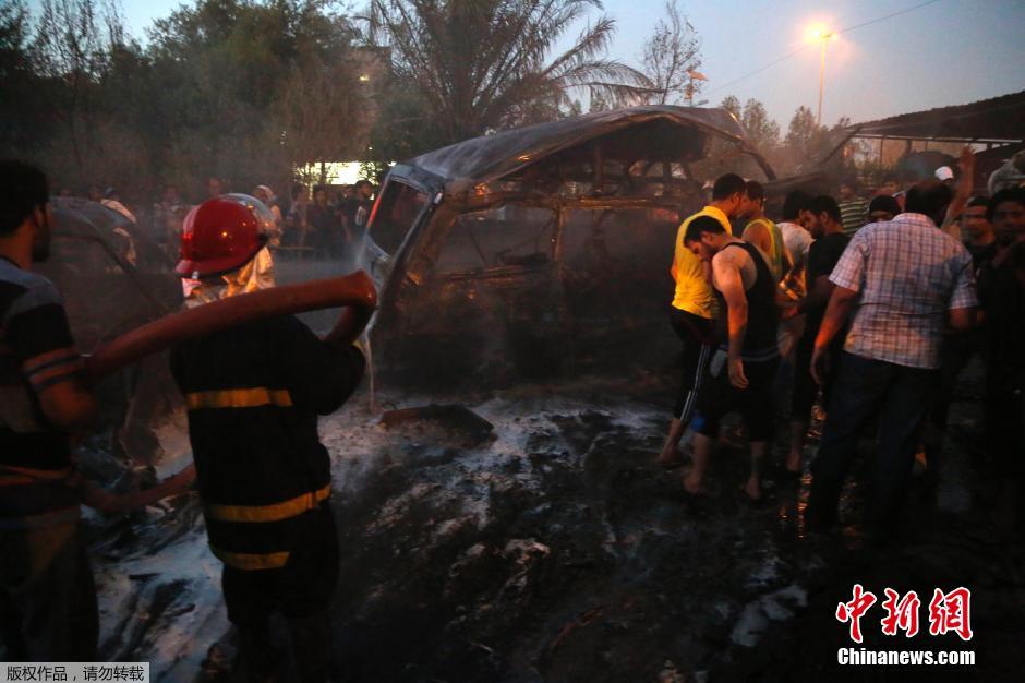 当地时间6月17日,伊拉克巴格达萨德尔,民众聚集在汽车炸弹袭击爆炸现场。据警方报道,爆炸袭击导致至少13人死亡,30人受伤。