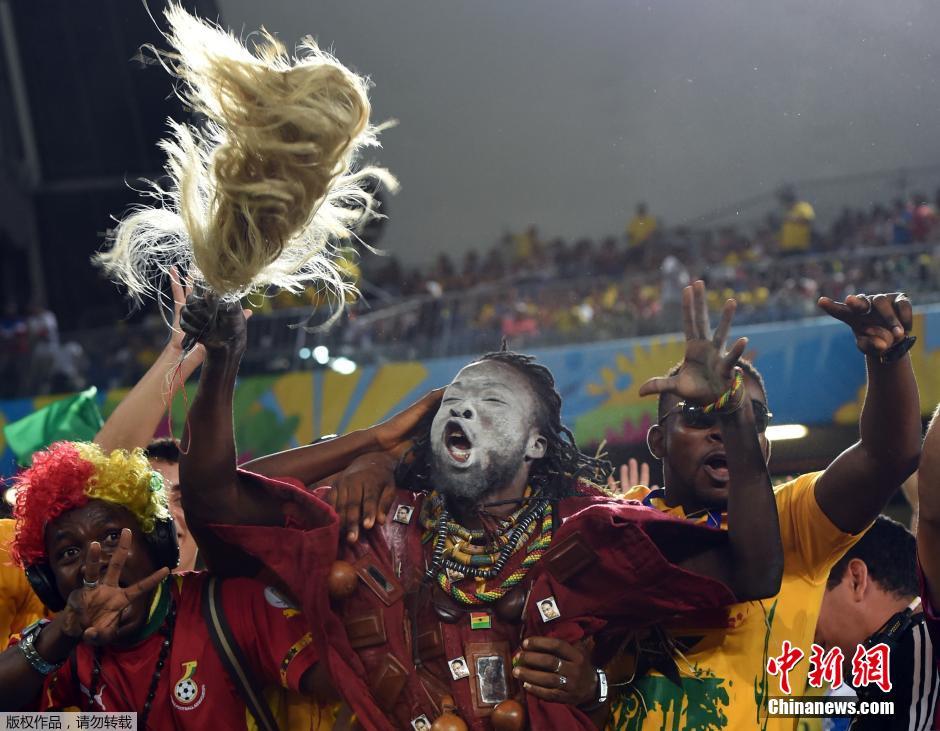 凭借着邓普西在开场31的闪击和替补中卫布鲁克斯的头槌破门,美国2-1击败加纳,取得世界杯开门红。图为现场的加纳球迷。
