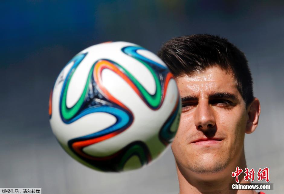 公认的黑马比利时队世界杯的第一场比赛将在6月18日进行,17日,比利时队在积极备战。图为比利时门将库尔图瓦。