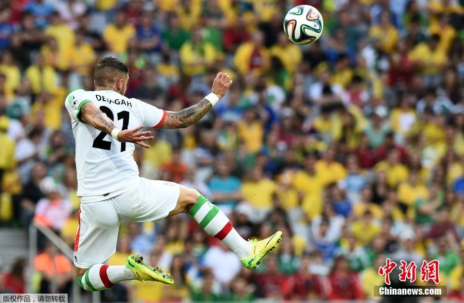 6月17日,2014巴西世界杯F组中,伊朗和尼日利亚联手上演了一场催眠大战,两队互交白卷,本届世界杯首次出现平局。图为已拼尽全力的伊朗球员。