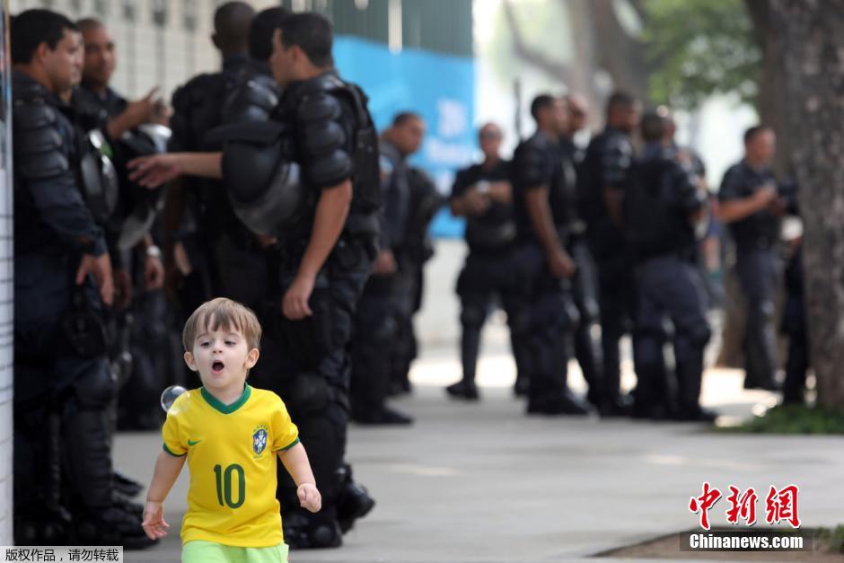 6月18日,巴西世界杯如火如荼,街头的孩童身穿巴西队球衣在街头穿行。