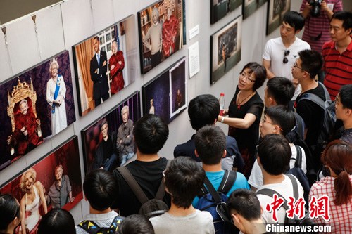 6月18日,第十届国际新闻摄影比赛(华赛)评委会主席黄文在北京传媒大学为学生讲解获奖作品。中新社发 熊然 摄
