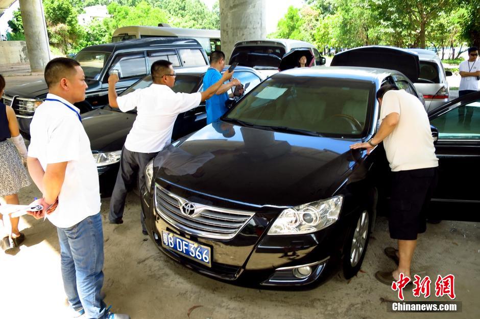 备受深圳市民关注的公务拍卖车辆自6月19日开始在车辆管理所驾驶员训练考核场为期一周的展示,市民可在展示期内前往现场实地看车。首批100辆车改车辆将于6月28日在深圳市公务用车改革车辆拍卖平台公开拍卖。中新社发 陈文 摄