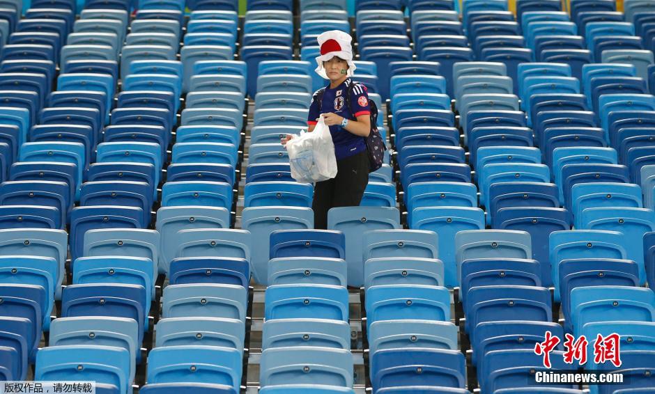 当地时间6月19日,纳塔尔沙丘球场,2014巴西世界杯小组赛C组,日本0-0希腊。尽管对比分不是特别满意,但是日本球迷在退场时还是冒雨主动收拾身边的垃圾,展现出了球迷的高素质。