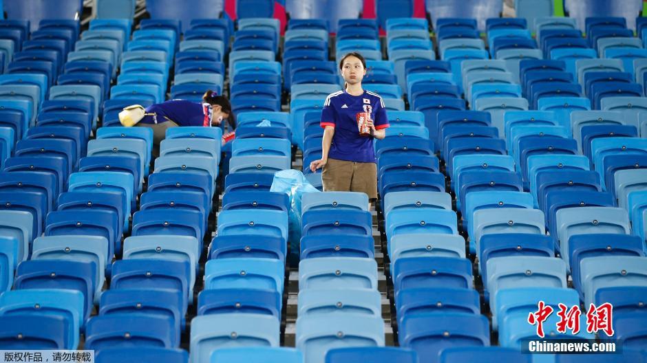 当地时间6月19日,纳塔尔沙丘球场,2014巴西世界杯小组赛C组,日本0-0希腊。尽管对比分不是特别满意,但是日本球迷在退场时还是冒雨主动收拾身边的垃圾,展现出了球迷的高素质。