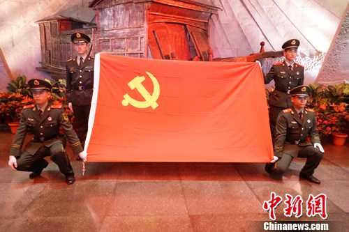 6月20日上午,为迎接共产党建立93周年,浙江百余名边防官兵在中共“一大”会址旁的嘉兴南湖革命纪念馆重温入党誓词,追忆“红船精神”。中新社发 李晨韵 摄