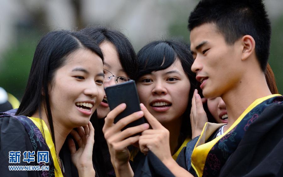 6月24日,福建师范大学的毕业生们相互拍照留念。当日,在位于福建福州的福建师范大学旗山校区内,参加完2014年本科毕业生学位证授予仪式的毕业生纷纷拍照留念,庆祝毕业。 新华社记者魏培全 摄