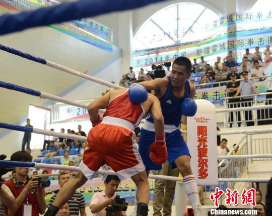 6月23日晚,为期4天的2014年中国·新疆伊犁霍城国际拳击邀请赛在霍城县体育馆圆满落幕。丁丽 摄