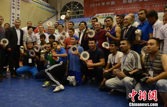 6月23日晚,为期4天的2014年中国·新疆伊犁霍城国际拳击邀请赛在霍城县体育馆圆满落幕。经过激烈角逐,来俄罗斯、土库曼斯坦、哈萨克斯坦、中国新疆的12名优秀运动员获得表彰和奖励。霍城县官员为四支代表队颁发了奖杯,为优秀运动员颁发了奖盘和奖金。丁丽 摄