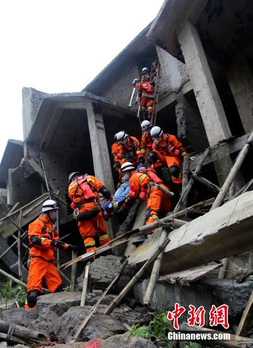 6月24日,贵州省消防部队联合相关部门,在著名景区梵净山地域进行代号“巅峰勇士”的地震救援实战演练。因“地震”发生,旅游区内大量建筑倒塌,大量游客被倒塌的建筑埋压。消防调集铜仁、黔东南、遵义三地消防部队投入演练,同时,也有科技、气象、住建、卫生、安监、旅游、林业、国土等多个部门配合演练,从各专业领域为救援提供参考。中新社发 刘斌 摄