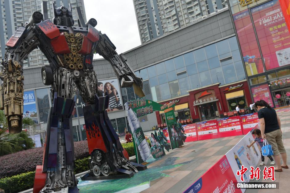 成都废旧汽车零件打造的“变形金刚”亮相街头