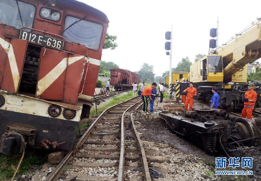 6月26日,在越南北部太原省,当地工作人员在事故现场进行勘察抢修。据当地媒体报道,25日晚9点前后,在越南北部太原省发生一起火车与汽车相撞事故,所幸没有人员伤亡。这是今年发生在该路段的第三起类似交通事故。