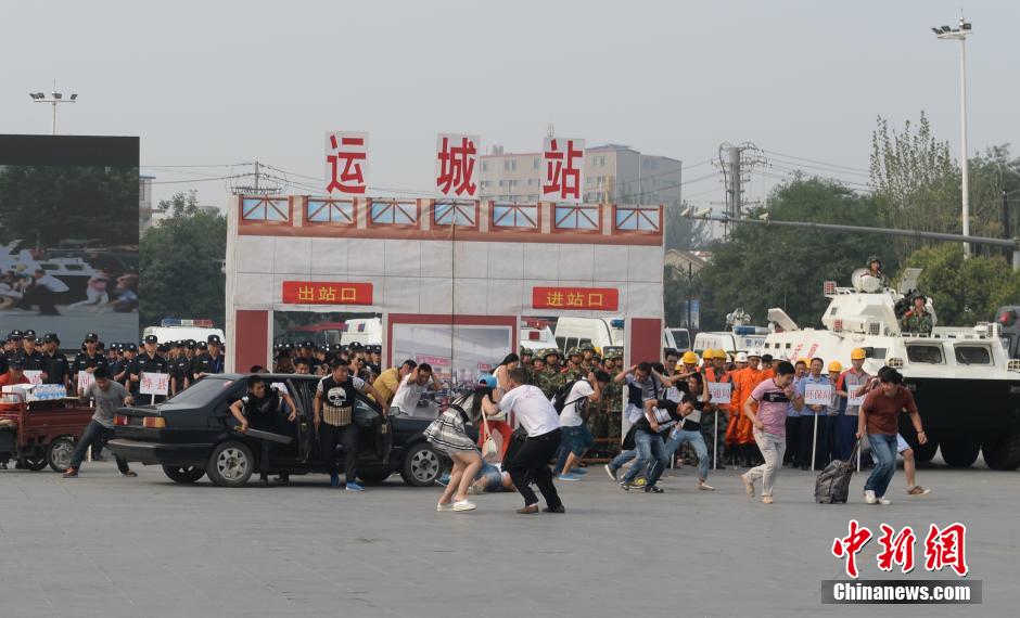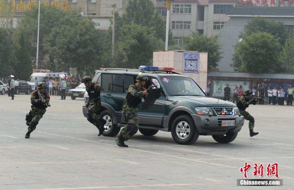 6月26日,山西省运城市公安局反恐应急演练在运城市河东广场正式开始。来自全市各县区公安局代表队参加了演练,此次实战演练分为解救人质、处理抢劫事件、处理群体突发事件、等4个演练科目。演练中,各警种、各部门、协同配合,迅速而高效地处置了每一起暴恐事件。李淑霞 摄