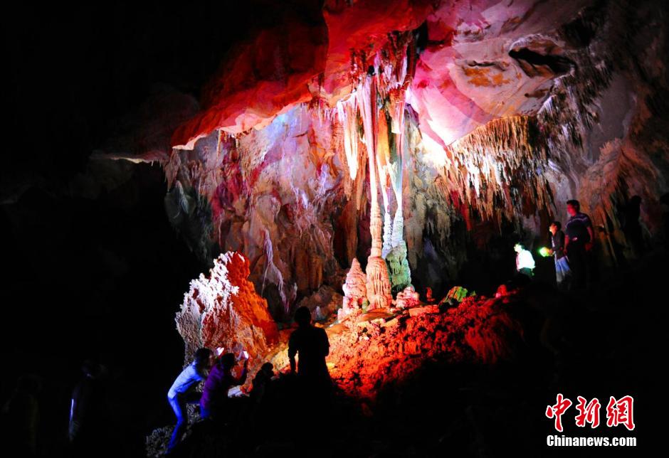 湖北省长阳县榔坪镇近日探明一处令人惊艳的画展式大溶洞。该溶洞纵深3公里,呈上、中、下三层分布,峡谷状洞内钟乳石密布,石笋、石柱、石花、石幔比比皆是,一步一景,精彩壮观,奇异纷呈,如临画展。专家称赞此溶洞“部分景观国内独一无二,极具旅游开发价值”。王康明 摄