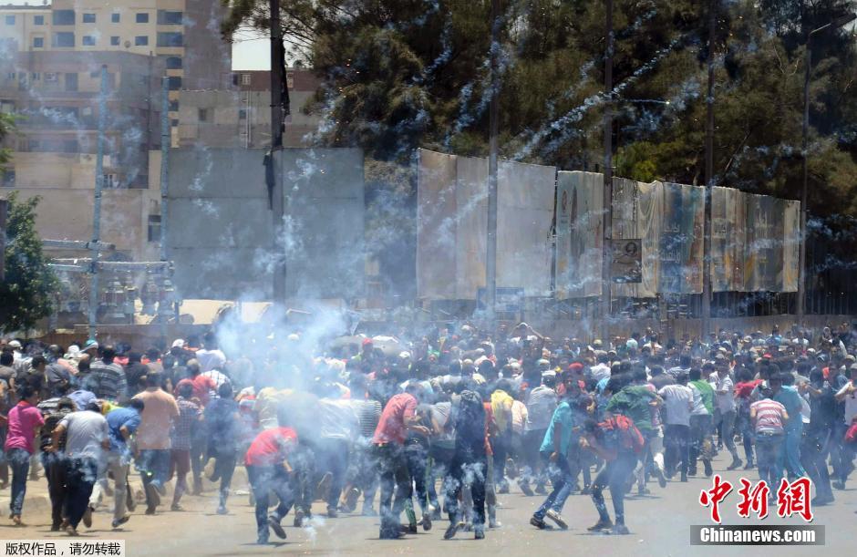 当地时间2014年7月3日,埃及开罗,埃及前总统穆尔西的支持者放火焚烧轮胎,与埃及安全部队发生激烈冲突。