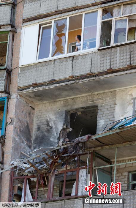 当地时间2014年7月3日,顿涅茨克克拉马托尔斯克遭乌克兰政府军炮击,房屋严重受损触目惊心。