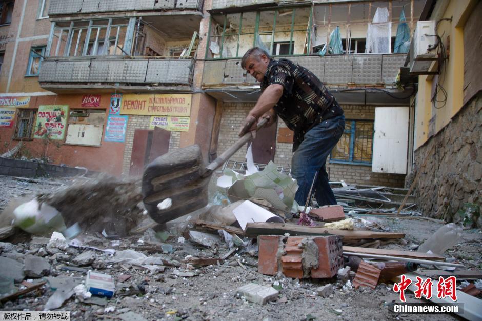 当地时间2014年7月3日,顿涅茨克克拉马托尔斯克遭乌克兰政府军炮击,房屋严重受损触目惊心。