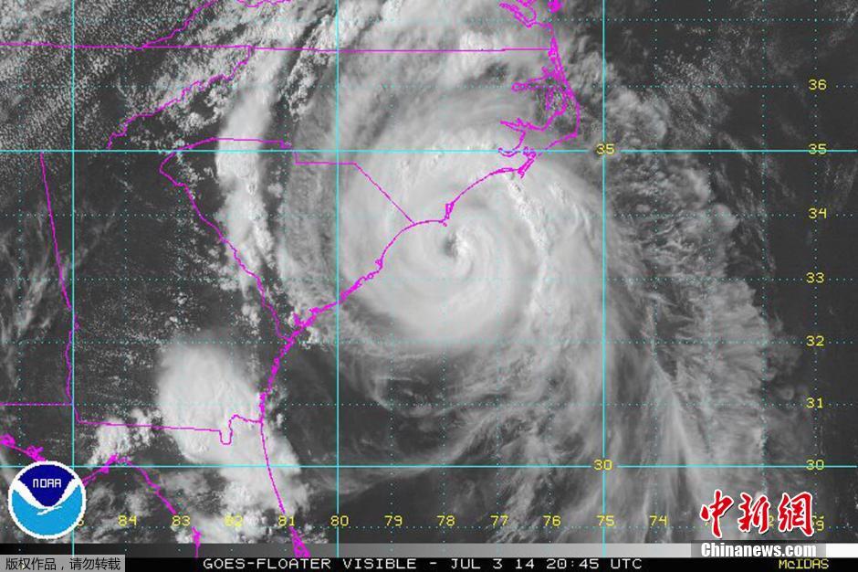 当地时间2014年7月3日,国际空间站发布飓风“亚瑟”的太空图片。据了解,美国飓风监测部门正在紧张研判飓风“亚瑟”的路径,目前预测“亚瑟”会向北卡罗来纳州逼近,但登陆可能性并不大。飓风随后会沿着美国东海岸继续行进,很可能给沿岸多个地区带来狂风暴雨。北卡罗来纳州州长麦柯瑞警告民众随时关注飓风动向并做好疏散准备,并宣布沿岸25个县进入紧急状态。