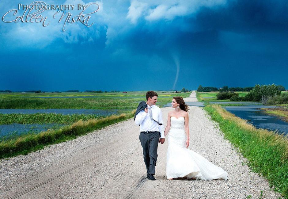 加拿大新婚夫妇在龙卷风前拍唯美婚纱照