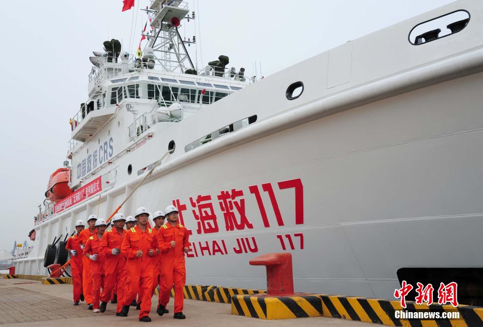 7月9日,中国首艘具有破冰功能的专业救助船“北海救117”轮在山东烟台正式列编中国交通运输部北海救助局,将执行中国北部海区海上救助任务。“北海救117”轮总长99米,型宽15.2米,型深7.6米,拥有铸造船艏柱、冰区加强船体和舵桨冰刀保护,是中国首艘具备B1级破冰能力的现代化专业救助船。该轮还设置了内置固定式浮油回收装置,首次配备柴电联合推进系统,具有150吨拖力以及16000海里、45天的超长续航能力,能够完成冰区救助、浮油回收、大型远距离拖带、夜间搜救等多种复杂海况下的救助任务。中新社发 王娇妮 摄