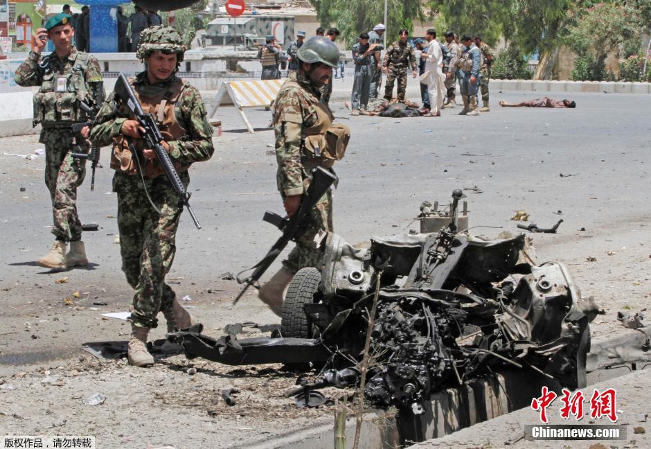 当地时间2014年7月9日,阿富汗坎大哈,塔利班自杀式袭击者袭击了警察总部和省长办公室,22名武装分子被击毙,另有5名警察和4名平民遇难。