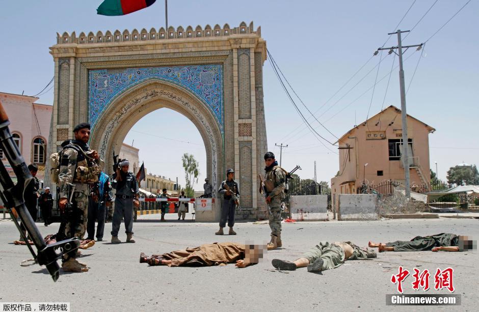 当地时间2014年7月9日,阿富汗坎大哈,塔利班自杀式袭击者袭击了警察总部和省长办公室,22名武装分子被击毙,另有5名警察和4名平民遇难。