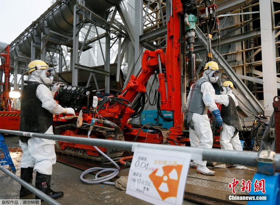当地时间2014年7月9日,日本福岛县,东电员工在受损的福岛第一核电站附近建筑冰墙并邀请媒体观看。TEPCO已开始在核电站下为巨大的管网挖掘壕沟,打算通过它来注入制冷剂。制冷剂是冷却至零下30度的氯化钙溶液。制冷剂将冻结土壤并形成物理屏障,防止流下山坡的干净地下水与反应堆泄露的受污染水混合。