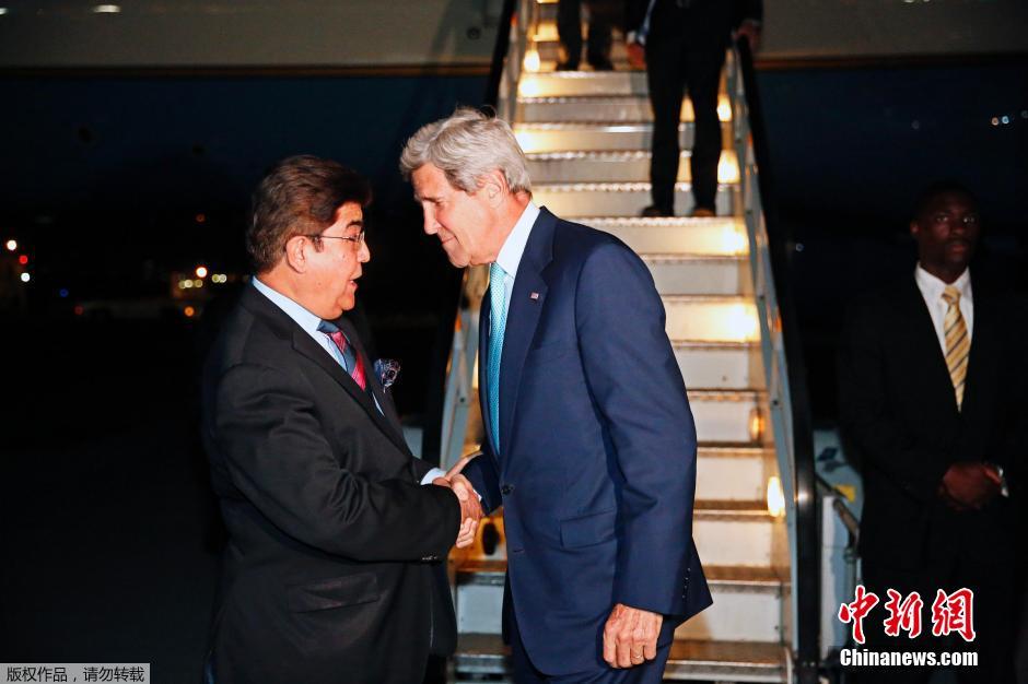 当地时间2014年7月11日,阿富汗喀布尔,美国国务卿克里抵达阿富汗,克里将与阿富汗总统卡尔扎伊和两位总统候选人会面。