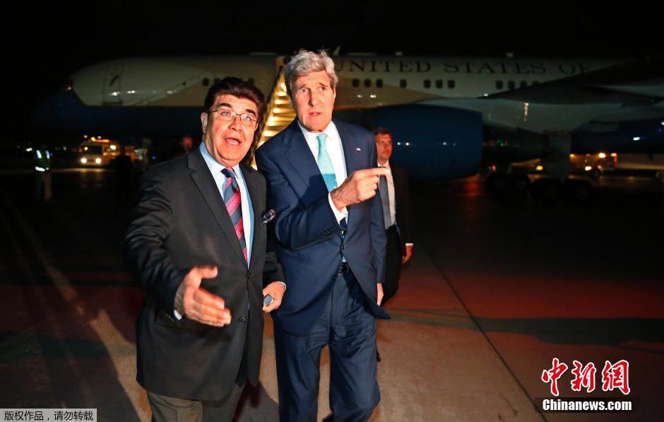 当地时间2014年7月11日,阿富汗喀布尔,美国国务卿克里抵达阿富汗,克里将与阿富汗总统卡尔扎伊和两位总统候选人会面。