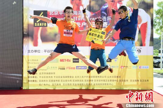 7月12日, 第十五届三夫户外三项赛在北京市平谷区4A级景区金海湖举办。图为体验组队员合影。马春江 摄