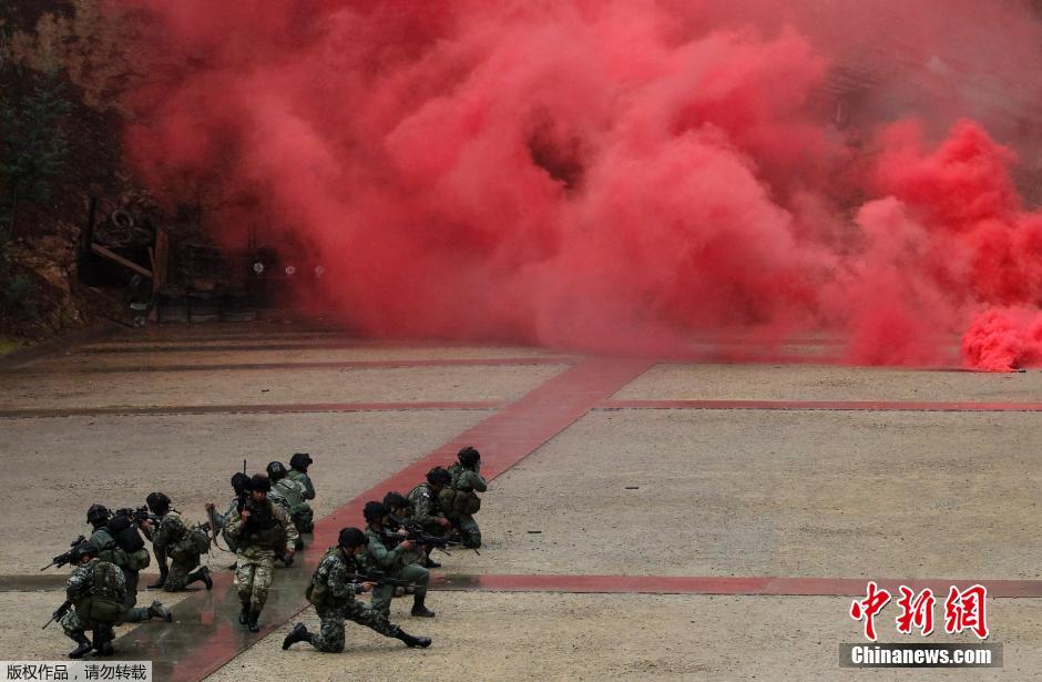 当地时间7月15日,哥伦比亚Sibate,来自墨西哥、危地马拉、洪都拉斯、萨尔瓦多、海地和阿根廷的警察官员参加一次反绑架和反勒索演习。