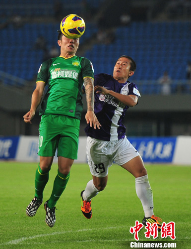 7月15日晚,球员在比赛中。当日,2014足协杯第3轮争夺,沈阳中泽主场0:1负于北京国安。 中新社发 于海洋 摄