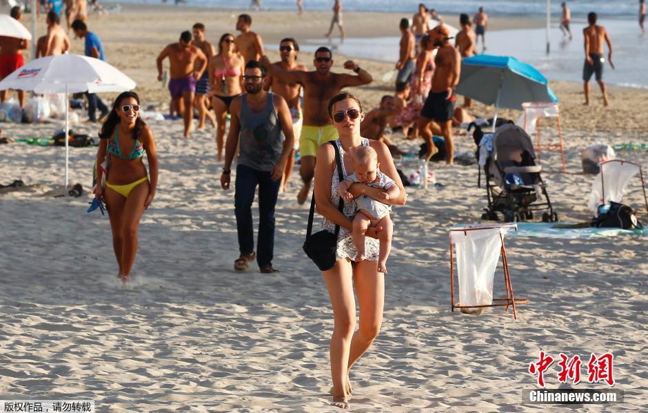 加沙向以色列发射火箭弹 海边游客“狼狈”避险