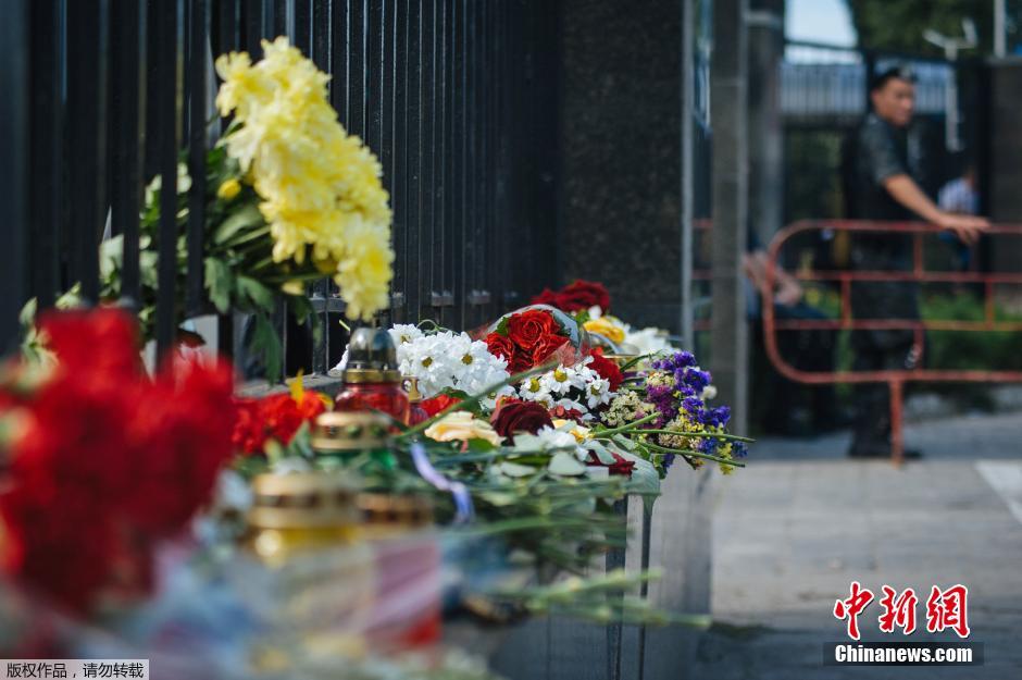 当地时间7月16日,俄罗斯莫斯科,民众在地铁站入口摆放鲜花悼念脱轨事故遇难者。俄罗斯首都莫斯科15日早高峰时段发生一起地铁列车脱轨事故,导致包括1名中国人在内的至少21人死亡、二百余人受伤。这是莫斯科地铁系统开通近80年来最严重的事故之一。